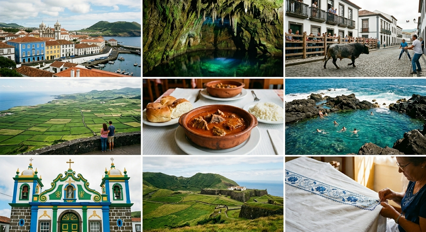 - At its heart lies Angra do Heroísmo, a UNESCO World Heritage city where cobblestone streets, pastel buildings, and centuries-old churches tell stories of explorers, sailors, and empires. Beyond the city, the island opens into lava caves, green pastures, and rugged coastlines shaped by time.